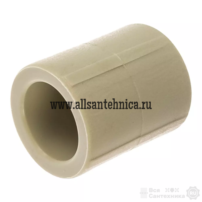 Полипропиленовый фитинг. Используется для соединения между собой двух труб одинакового диаметра. Производится методом литья под давлением.