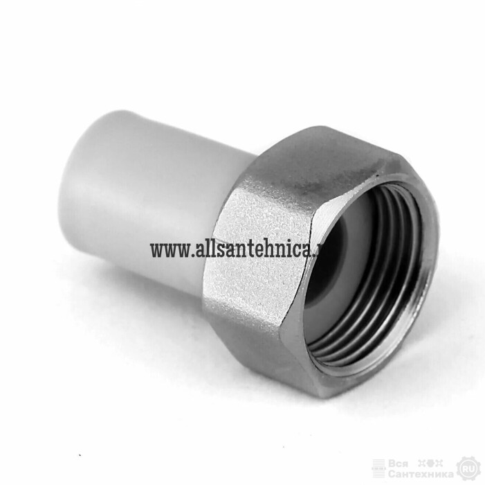 Штуцер полипропиленовый с накидной гайкой. Позволяет подсоединить к трубопроводу из полипропилена элемент системы с резьбовым подключением. Накидная гайка выполнена из латуни с никелевым покрытием. Резьба – внутренняя.