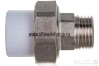 Комбинированный полипропиленовый фитинг, закладная деталь изготовлена из латуни марки ЛС-59-1. Представляет собой разъемное соединение между металлической и пластиковой трубой. Латунные части производятся методом горячего штампования, пластиковые - методом литья под давлением.