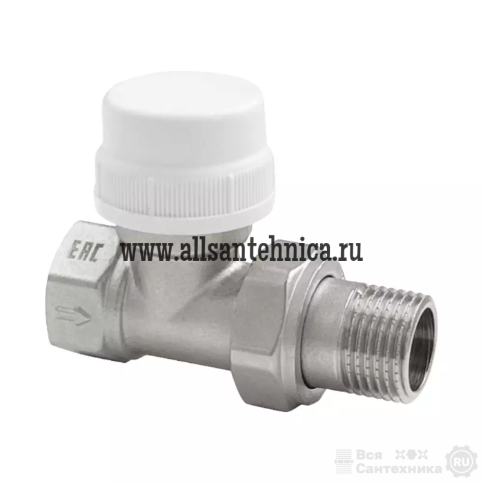Клапан для радиаторов термостатический прямой - отвечает за ручное или автоматическое регулирование расхода теплоносителя в отопительном приборе. Во втором случае комплектуется термостатической головкой или сервоприводом, управляемым комнатным термостатом или контроллером.Резьба - наружная, цилиндрическая трубная по ГОСТу 6357-81.