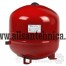 (CM.ERE) 6–50 л. Бак предназначен для компенсации температурного расширения теплоносителя, сглаживания колебаний давления и гидравлических ударов в системах отопления с температурой теплоносителя до 100 °С и рабочим давлением до 4 (модели 6–12 л), 3,5 (18, 24 л) и 6 (от 35 л включительно). В качестве теплоносителя может использоваться вода и антифриз на основе гликолей. Бак оснащен несменной мембраной из стиролбутадиенового каучука (SBR). Мембрана завальцована в фальцевое соединение частей корпуса, разделяя его на жидкостную (нижняя) и газовую (верхняя) полости. Жидкостная часть имеет присоединительный патрубок диаметром ¾", газовая – штуцер для регулирования давления. Заводское давление воздушной подушки (преднастройка) – 1,5 бара. Корпус мембранного расширительного бака выполнен из углеродистой стали и окрашен термостойкой эпоксидной эмалью красного цвета (RAL 3000). Бак предназначен для вертикальной установки. Модели объемом 35 л и более имеют установочные ножки (есть баки 35 и 50 л без ножек).