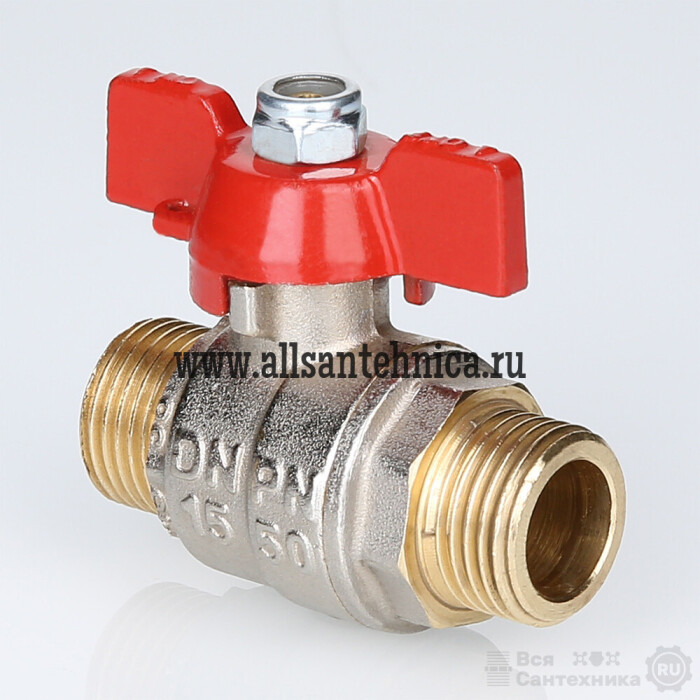 Шаровой кран S 219 оснащен ручкой «бабочка» из алюминиевого сплава. Резьба присоединений – наружная/наружная.