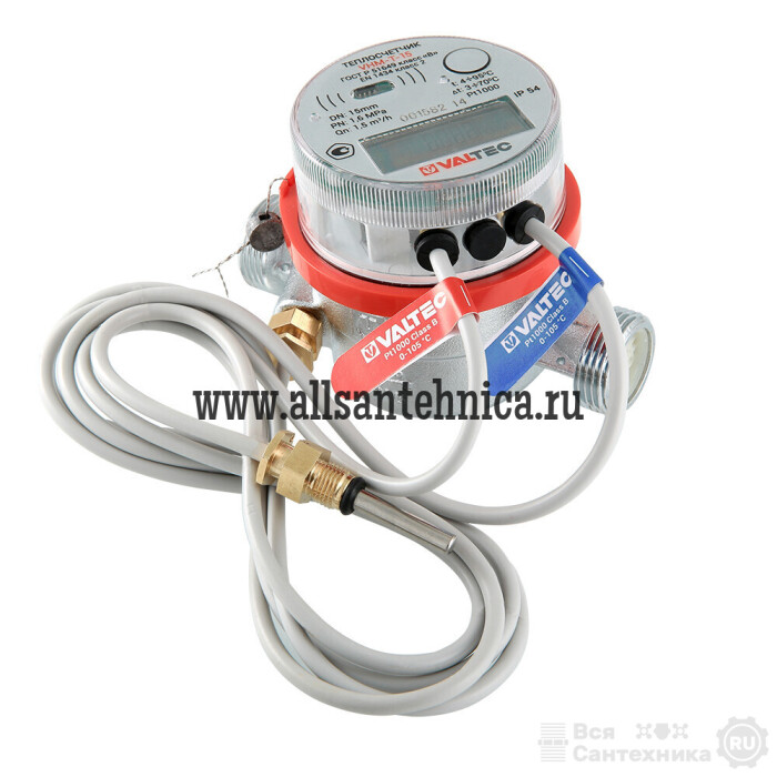 (VHM-T) Теплосчетчик предназначен для коммерческого учета тепловой энергии в водяных системах отопления и горячего водоснабжения, соответствует требованиям ГОСТ Р 51649. Квартирный теплосчетчик VALTEC VHM-T состоит из одноструйного тахометрического расходомера с латунным никелированным корпусом, двух платиновых датчиков температуры Pt 1000 (в комплекте – адаптеры на М10), электронного тепловычислителя с энергонезависимой памятью, архивом данных глубиной до 8 лет, встроенными часами наработки. Класс точности прибора – B. Межповерочный интервал – 4 года. Срок службы – 12 лет. Гарантия – 36 месяцев от даты продажи.