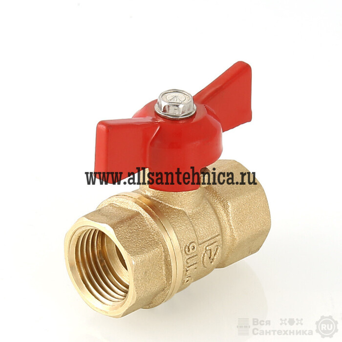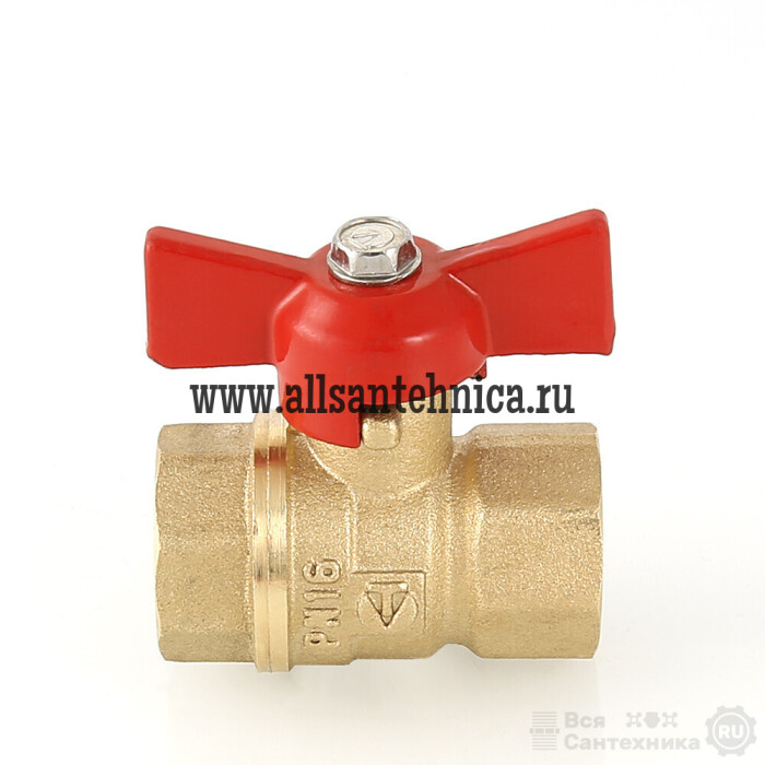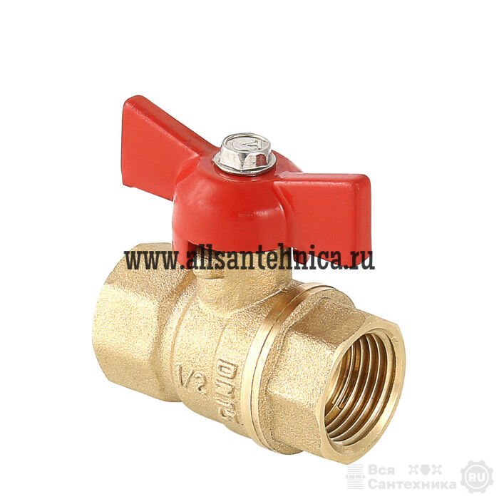 (VT.122.G) Полнопроходной ремонтопригодный шаровой кран стандартного ресурса. Выполнен из из латуни марки ЛЦ40Сд (ГОСТ 17711-93). Кран оснащен ручкой типа «бабочка», изготовленной из силумина марки АК7 (ГОСТ 1583-93) с покрытием эпоксиполиэфирной порошковой композицией красного цвета. Резьба присоединений – внутренняя/внутренняя.