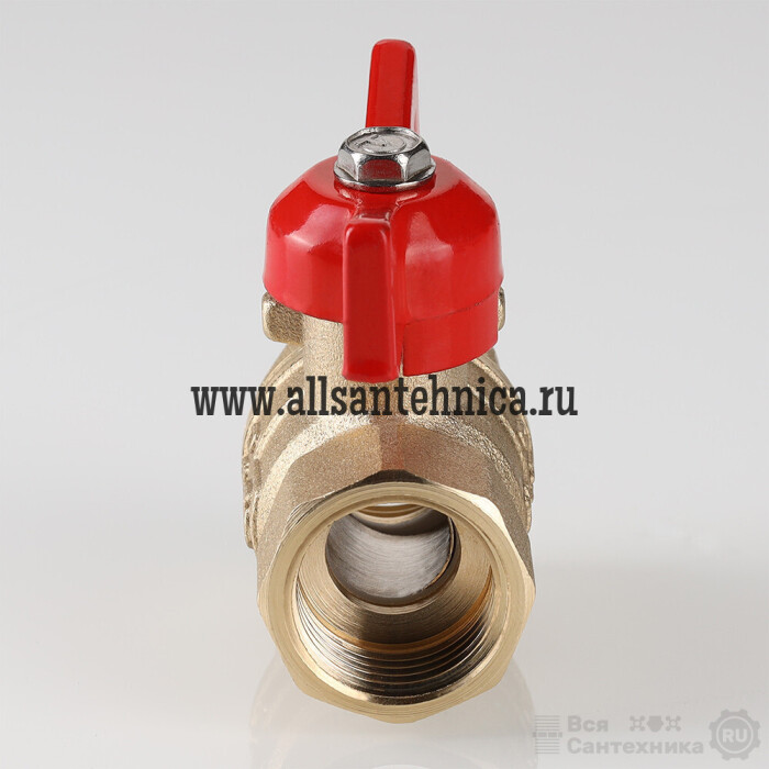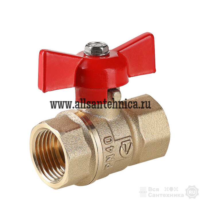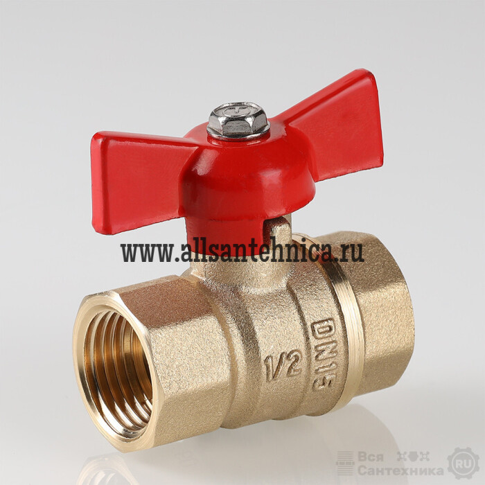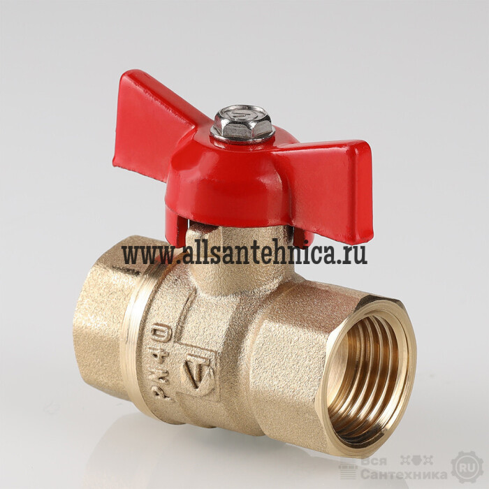 (VT.122.GN) Полнопроходной ремонтопригодный шаровой кран стандартного ресурса. Выполнен из из латуни марки ЛЦ40Сд (ГОСТ 17711-93). Кран оснащен ручкой типа «бабочка», изготовленной из силумина марки АК7 (ГОСТ 1583-93) с покрытием эпоксиполиэфирной порошковой композицией красного цвета. Резьба присоединений – внутренняя/внутренняя.