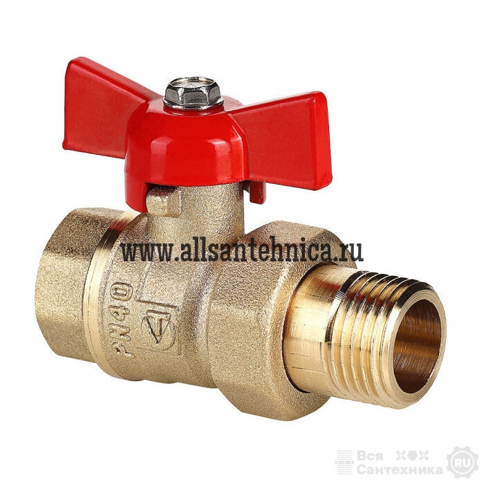 (VT.127.GN) Полнопроходной ремонтопригодный шаровой кран стандартного ресурса. Выполнен из из латуни марки ЛЦ40Сд (ГОСТ 17711-93). Кран оснащен ручкой типа «бабочка», изготовленной из силумина марки АК7 (ГОСТ 1583-93) с покрытием эпоксиполиэфирной порошковой композицией красного цвета. Соединен накидной гайкой с резьбовым полусгоном. Резьба присоединений – внутренняя/наружная. Допустимая температура рабочей среды составляет – от +1 до +110 °С.