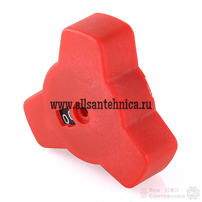 Крышка рукоятки балансировочного клапана выполнена из окрашенного в красный цвет пластика ABS (ударопрочная техническая термопластическая смола), шестеренчатый механизм – из нейлона.