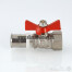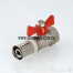(VT.242.N) Шаровой кран редуцированный (уменьшенного прохода) для использования в составе инженерных систем и технологических установок на основе металлополимерных труб при температуре от –15 до +110 °С и рабочем давлении до 10 бар. Неремонтопригодный, с минимальным ресурсом в 4 тыс. циклов. Оснащен ручкой типа «бабочка» из алюминиевого сплава с эпоксидной покраской. Пресс-соединение с металлополимерным трубопроводом – одностороннее; резьбовой патрубок с внутренней резьбой. Не предназначен к применению на стояках, магистральных трубопроводах и участках систем, в которых могут возникнуть изгибающие усилия, передаваемые на корпус крана.