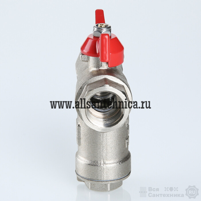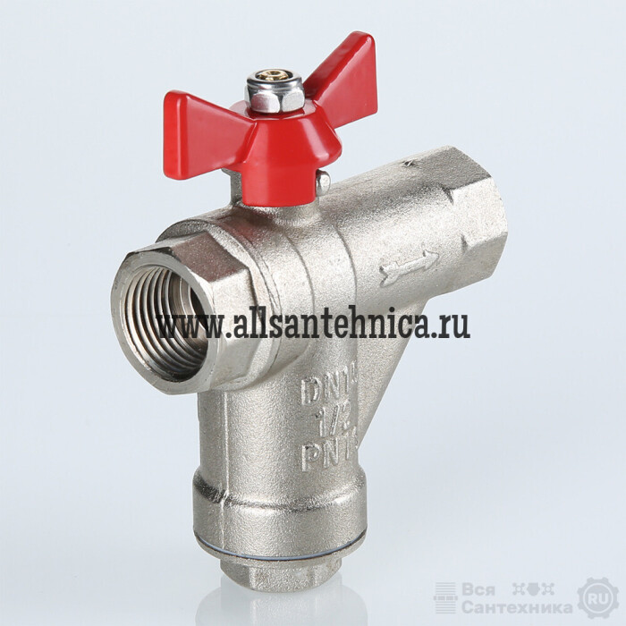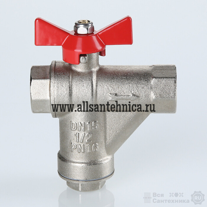 (VT.294.N) Кран с прямым фильтром VT.294 предназначен для установки на квартирных вводах водопровода холодной и горячей воды. За счет турбулизации потока рабочей среды, при её повороте на 90°, происходит равномерное омывание потоком сетки фильтроэлемента. При этом в работе участвует одновременно вся площадь фильтроэлемента. Благодаря тому что поток направлен почти по касательной к сетке, степень фильтрации такого фильтра выше, чем у обычного косого фильтра с сеткой такой же ячеи. Ручка крана (типа "бабочка") направлена к пользователю, что гораздо удобнее в стесненных условиях сантехкабины, чем при верхнем расположении ручки.
