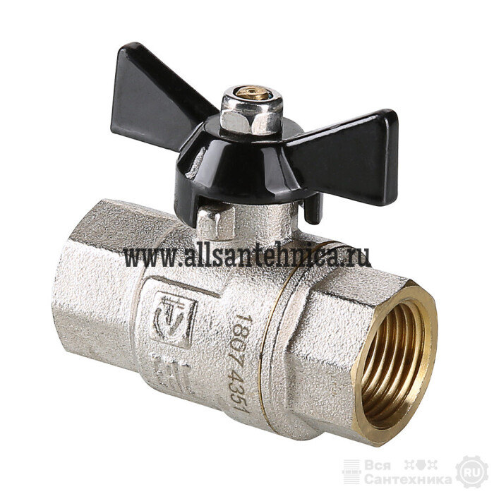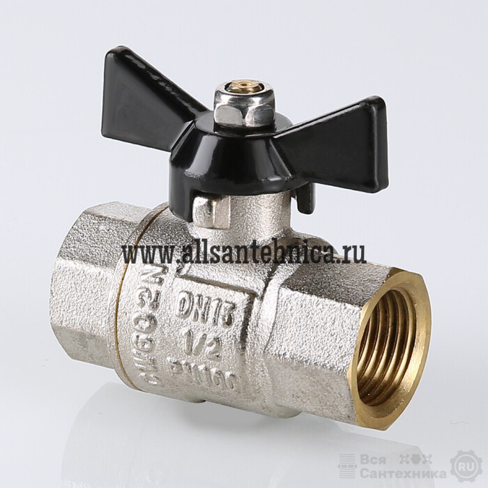 (VT.317.N) Полнопроходной усиленный шаровой кран. Рекомендуется к применению в случаях, когда на арматуру возможна передача изгибающих моментов из-за несоосности или температурных деформаций трубопроводов. Материал корпуса и затвора – латунь CW602N, стойкая к вымыванию цинка, седельных колец и сальниковых уплотнений – тефлон с термоприсадками. Ремонтопригодный. Длина резьбы увеличена для создания более плотных соединений. Кран допускается к использованию при температуре от –20 до +150 °С. Тип рукоятки – «бабочка». Резьба присоединений – внутренняя/внутренняя.