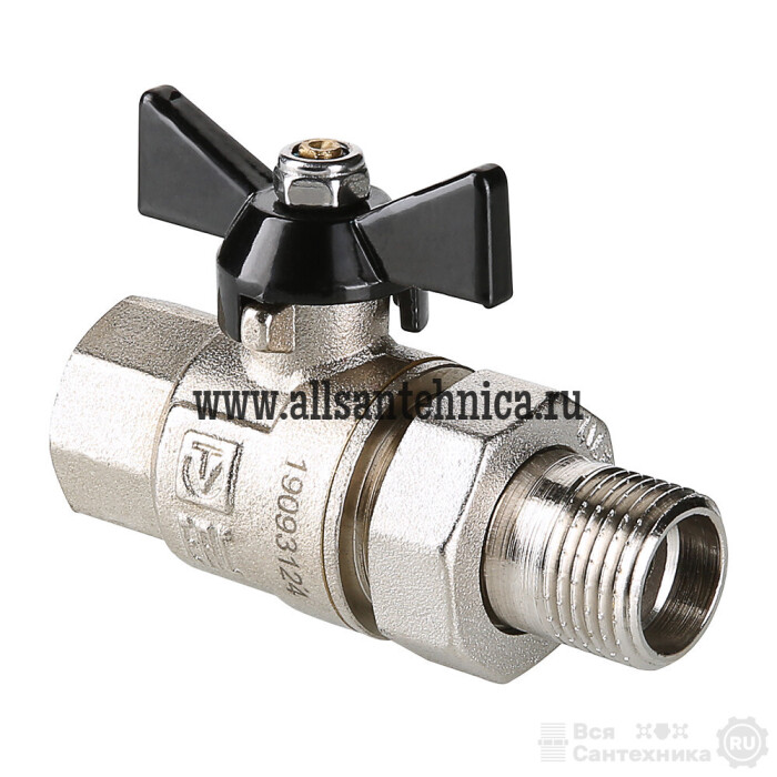 (VT.327.N) Полнопроходной усиленный шаровой кран. Рекомендуется к применению в случаях, когда на арматуру возможна передача изгибающих моментов из-за несоосности или температурных деформаций трубопроводов. Материал корпуса и затвора – латунь CW602N, стойкая к вымыванию цинка, седельных колец и сальниковых уплотнений – тефлон с термоприсадками. Ремонтопригодный. Длина резьбы увеличена для создания более плотных соединений. Кран допускается к использованию при температуре до +120 °С (снижение характеристики обусловлено наличием полусгона с уплотнением из EPDM). Тип рукоятки – «бабочка». Модель укомплектована присоединительным полусгоном. Резьба присоединений – внутренняя/наружная.