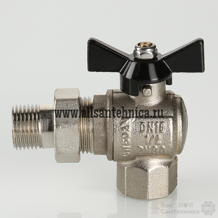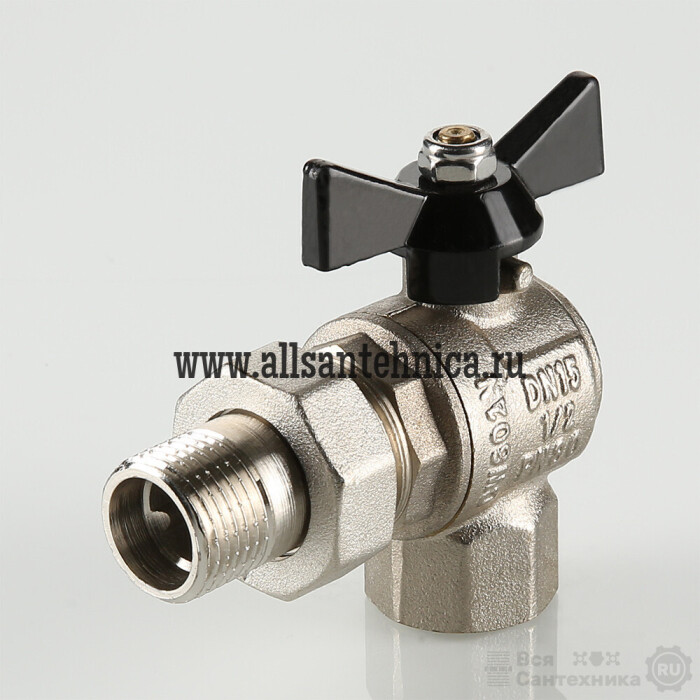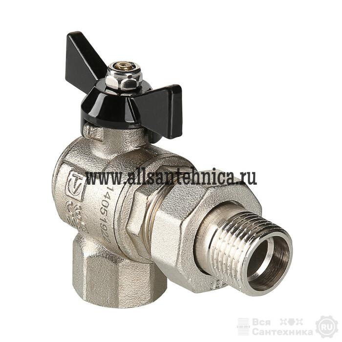 (VT.328.N) Угловой усиленный шаровой кран полного прохода. Рекомендуется к применению в случаях, когда на арматуру возможна передача изгибающих моментов из-за несоосности или температурных деформаций трубопроводов. Материал корпуса и затвора – латунь CW602N, стойкая к вымыванию цинка, седельных колец и сальниковых уплотнений – тефлон с термоприсадками. Ремонтопригодный. Длина резьбы увеличена для создания более плотных соединений. Кран допускается к использованию при температуре до +120 °С (снижение характеристики обусловлено наличием полусгона с уплотнением из EPDM). Тип рукоятки – «бабочка». Модель укомплектована присоединительным полусгоном. Резьба присоединений – внутренняя/наружная.