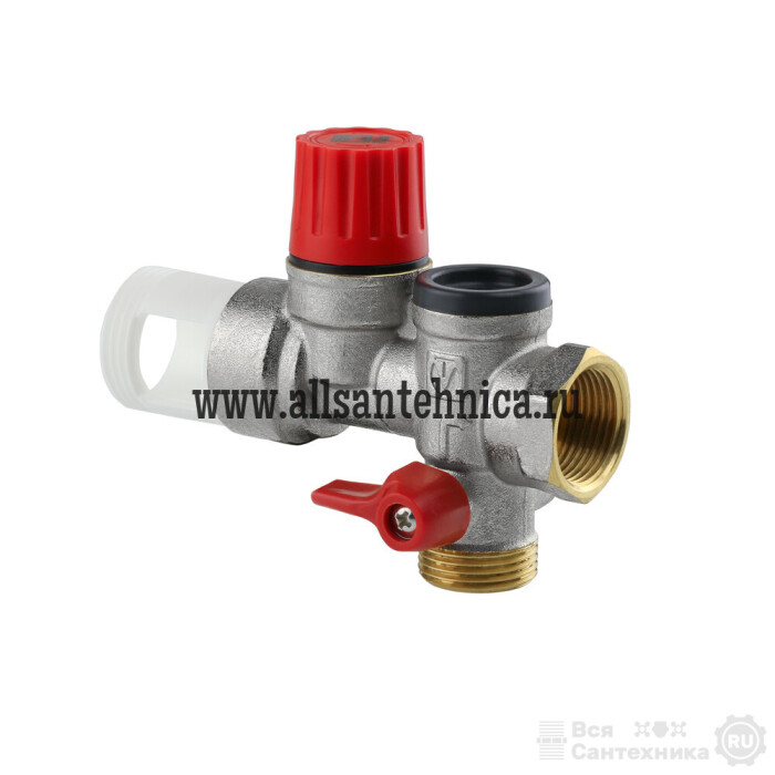 Предохранительный клапан группы безопасности оснащен устройством принудительного открытия, что позволяет открывать клапан для слива воды из бойлера, проверки срабатывания и предотвращения залипания золотника.