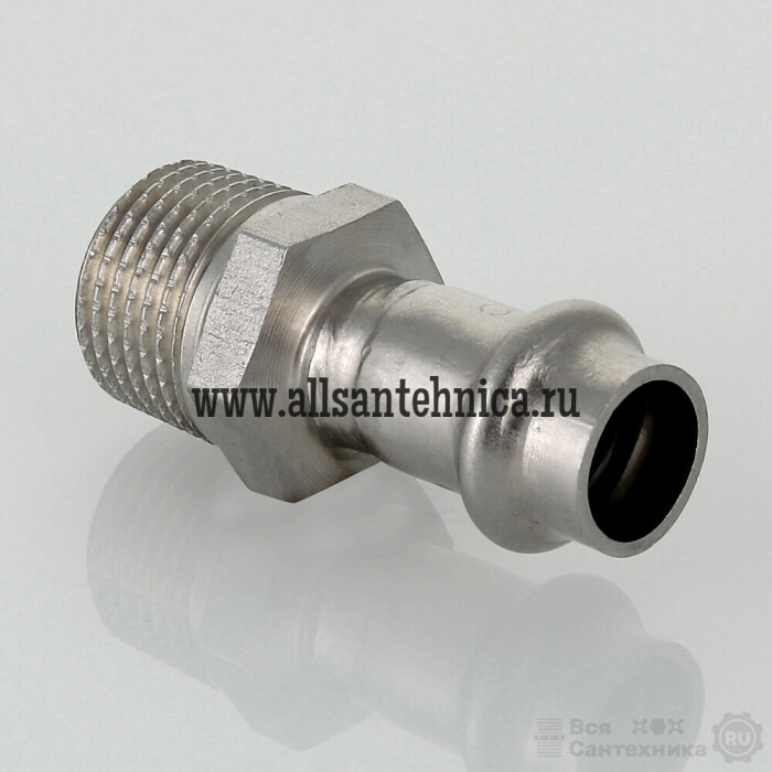 (VTi.901.I) Пресс-фитинг из нержавеющей стали с наружной резьбой обеспечивает соединение тонкостенной стальной трубы с резьбовым элементом монтируемой системы. Область применения – трубопроводы водоснабжения, отопления, иные инженерные и технологические установки с рабочей температурой до 120 °С и давлением до 16 бар.