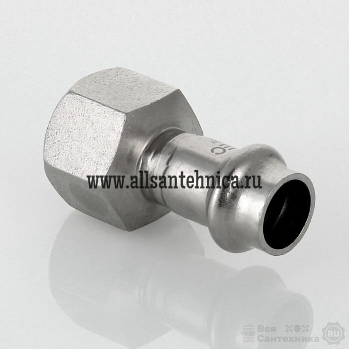 (VTi.902.I) Пресс-фитинг из нержавеющей стали с внутренней резьбой обеспечивает соединение тонкостенной стальной трубы с резьбовым элементом монтируемой системы. Область применения – трубопроводы водоснабжения, отопления, иные инженерные и технологические установки с рабочей температурой до 120 °С и давлением до 16 бар.