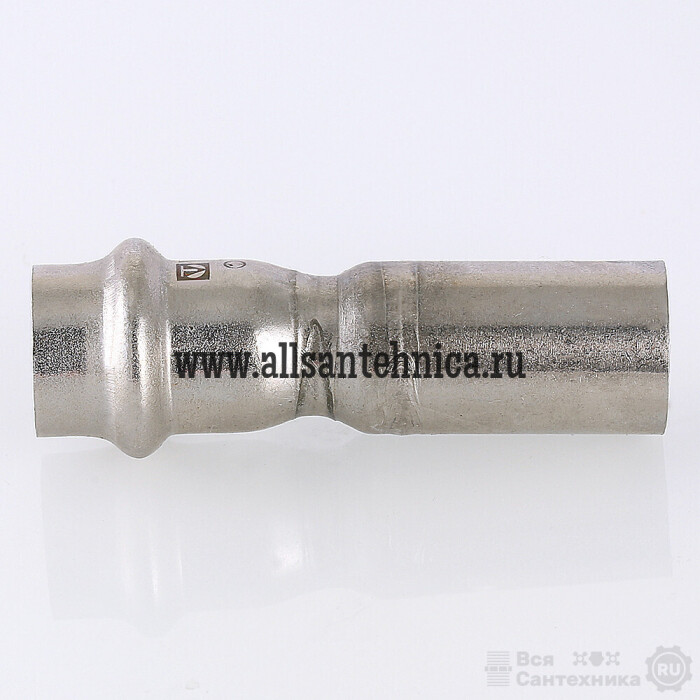 Фитинг VTi.905.l обеспечивает при монтаже переход трубопровода с одного диаметра на другой. Достоинством бесштуцерных соединителей является малый коэффициент местного сопротивления (сужение канала практически отсутствует). Фитинг рассчитан на обжатие с помощью пресс-инструмента V-профиля.