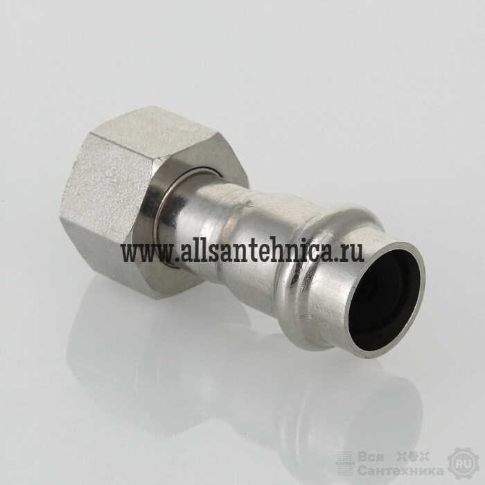 Пресс-соединение – бесштуцерное. Обжатие производится с помощью пресс-инструмента V-профиля. Накидная гайка комплектуется прокладкой.