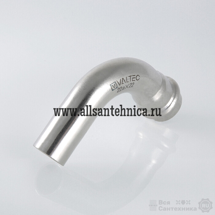 Фитинг VTi.950.l – угольник для соединения труб под углом 90°. Благодаря бесштуцерной конструкции соединитель обладает малым коэффициентом местного сопротивления – сужение канала практически отсутствует. Фитинг рассчитан на обжатие с помощью пресс-инструмента V-профиля.
