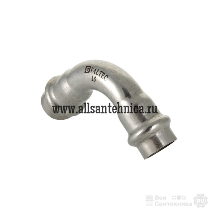 (VTi.951.I) Двухраструбный пресс-угольник из нержавеющей стали обеспечивает соединение под углом 90° тонкостенных стальных труб систем водоснабжения, отопления, иных инженерных и технологических установок с рабочей температурой до 120 °С и давлением до 16 бар. Изделие изготовлено из стали AISI 304. Материал уплотнительных колец – эластомер EPDM. Отдельно можно приобрести уплотнительные кольца из FPM (витон); в этом случае максимальная рабочая температура увеличивается до 140 °С.