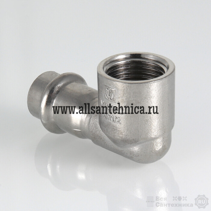 (VTi.952.I) Пресс-угольник из нержавеющей стали с внутренней резьбой обеспечивает соединение тонкостенной стальной трубы с резьбовым элементом монтируемой системы под углом 90°. Область применения – трубопроводы водоснабжения, отопления, иные инженерные и технологические установки с рабочей температурой до 120 °С и давлением до 16 бар.