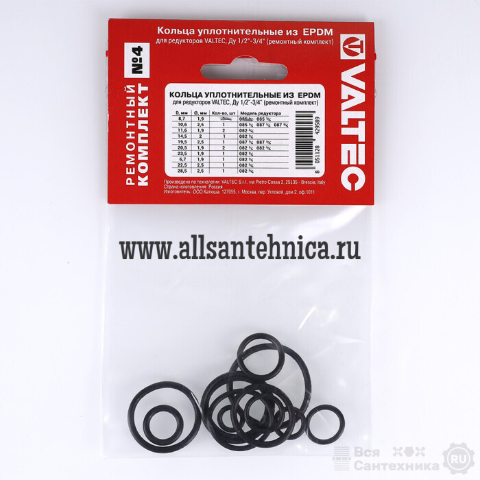 (VT.KIT.4) Данный ремонтный комплект включает в себя уплотнительные кольца из EPDM, предназначенные для замены в ремонта или обслуживания следующих колец редукторов давления VALTEC: