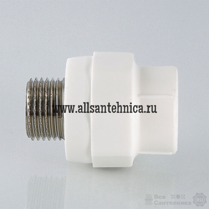 (VTp.701.0) Прямой полипропиленовый фитинг для соединения полипропиленовой трубы и компонента инженерной системы с резьбовым подключением. Резьба фитинга – наружная трубная по ГОСТу 6357. Предусмотрен участок корпуса шестигранной формы, под гаечный или трубный рычажный ключ.