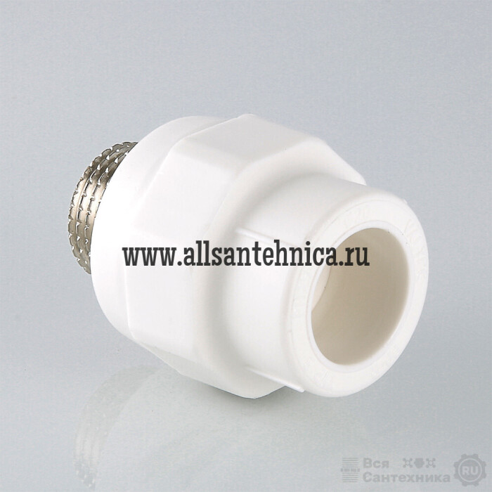 (VTp.701.0) Прямой полипропиленовый фитинг для соединения полипропиленовой трубы и компонента инженерной системы с резьбовым подключением. Резьба фитинга – наружная трубная по ГОСТу 6357. Предусмотрен участок корпуса шестигранной формы, под гаечный или трубный рычажный ключ.