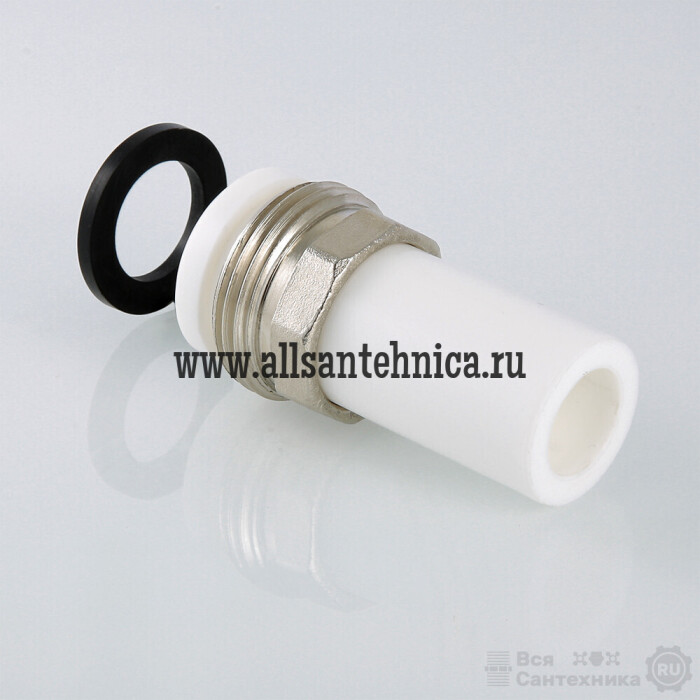 (VTp.721.0) Фитинг для соединения полипропиленового трубопровода и компонента инженерной системы с помощью накидной гайки. Резьба – наружная трубная по ГОСТу 6357.