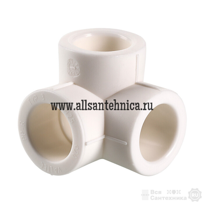 (VTp.738.0) Полипропиленовый фитинг – тройник для разветвления полипропиленового трубопровода в двух плоскостях (тройник двухплоскостной). Монтаж производится методом раструбной сварки. Свариваемые поверхности – внутренние. Серия включает в себя фитинги с условным диаметром 20, 25 и 32 мм.