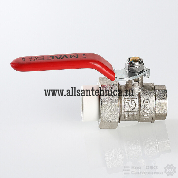 (VTp.742.0) Полнопроходной шаровой кран для использования в качестве запорной арматуры на полипропиленовых трубопроводах систем водоснабжения, включая питьевое, отопления, технологических установок. Переход крана на полипропиленовую трубу осуществляется с помощью накидной гайки, соединение с трубопроводом – раструбной сваркой. Второй патрубок крана имеет внутреннюю резьбу. Рукоятка – флажковая, выполненная из оцинкованной стали с ПВХ-покрытием. Минимальный ресурс крана – 8 тыс. циклов. Максимальная рабочая температура – 90 °С, номинальное давление (PN) – 25 бар.