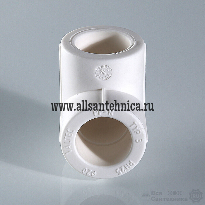 (VTp.751.0) Двухсторонний фитинг для соединения элементов полипропиленового трубопровода под углом 90° друг к другу. Монтаж осуществляется методом раструбной сварки.