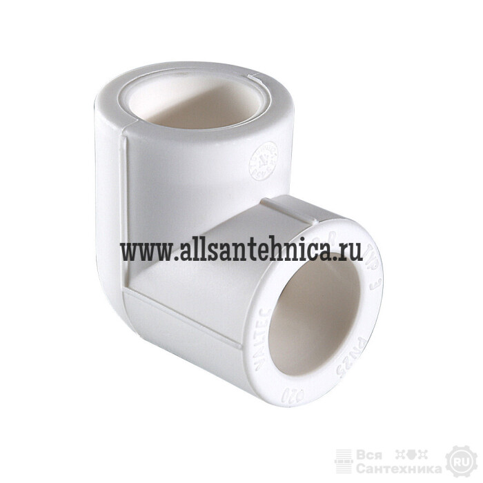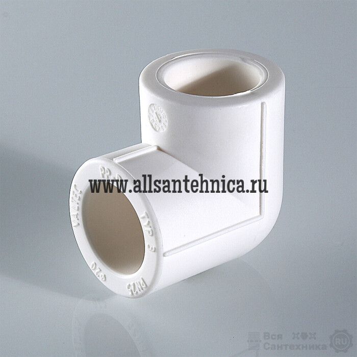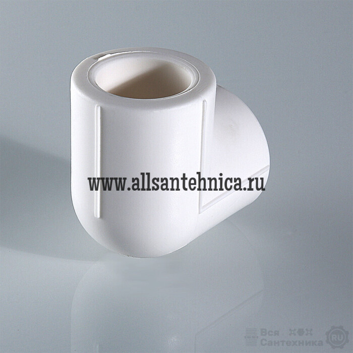 (VTp.751.0) Двухсторонний фитинг для соединения элементов полипропиленового трубопровода под углом 90° друг к другу. Монтаж осуществляется методом раструбной сварки.
