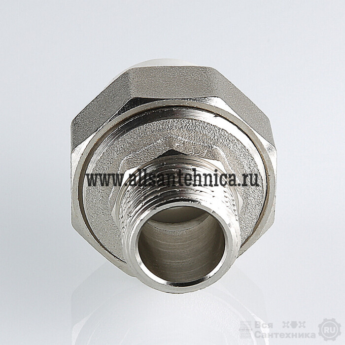 (VTp.761.0) Полипропиленовый фитинг для создания разъемного, с использованием накидной гайки, соединения полипропиленового трубопровода с трубопроводом или арматурой из других материалов. Уплотнительное кольцо выполнено из синтетического каучука EPDM. Резьба фитинга – наружная трубная по ГОСТу 6357.