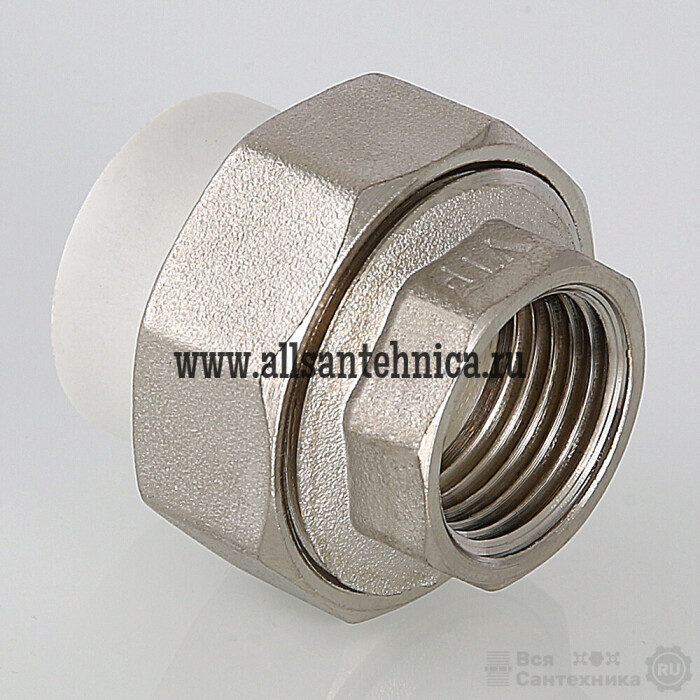 (VTp.762.0) Полипропиленовый фитинг для создания разъемного, с использованием накидной гайки, соединения полипропиленового трубопровода с трубопроводом или арматурой из других материалов. Уплотнительное кольцо выполнено из синтетического каучука EPDM. Резьба фитинга – внутренняя трубная по ГОСТу 6357.
